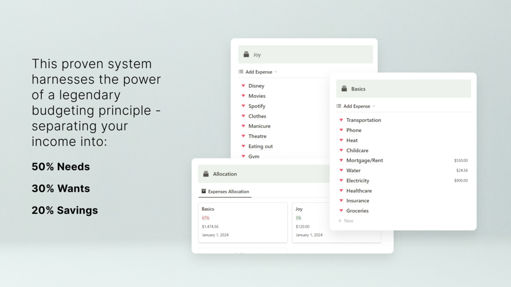 You’ll actually see where your money’s going, sort it into categories that make sense (Needs, Joy, Savings), and finally stop feeling like you're financially winging it every damn month.